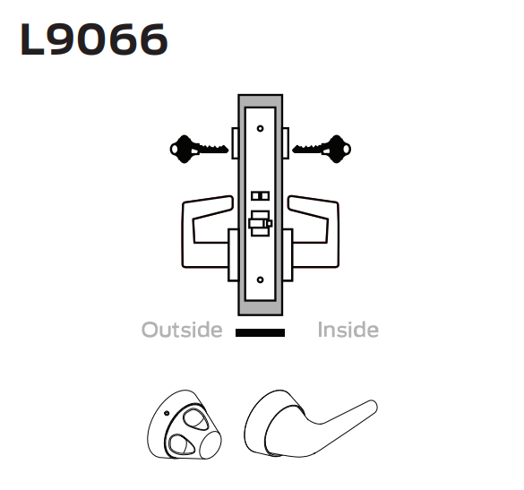 • Key cylinder both sides; latchbolt and deadlocking auxiliary latch