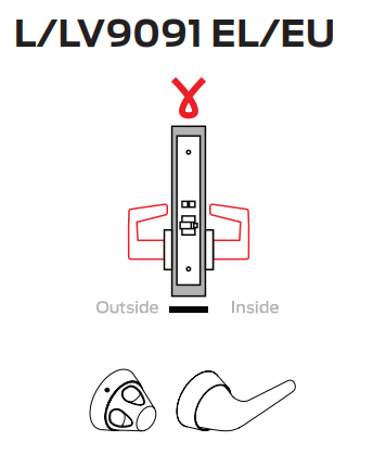 • When power is removed (or power fails): in EL mode either lever will retract latchbolt; in EU mode both levers are locked