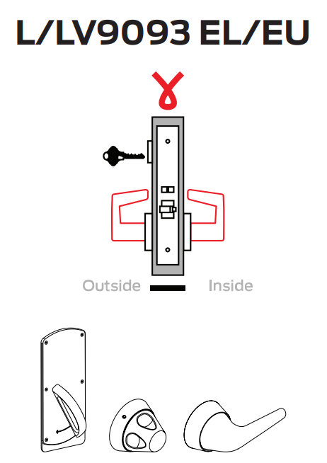 • When power is removed (or power fails): in EL mode either lever will retract latchbolt; in EU mode both levers are locked