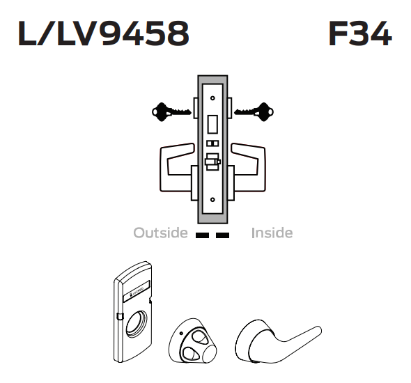 • Outside lever is made inoperative when deadbolt is thrown by key from either side; Vandlgard® option allows outside lever to rotate freely down while locked
