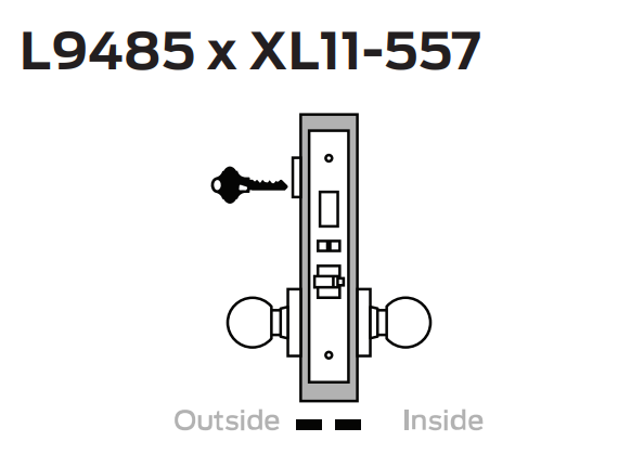 • Guard key outside retracts deadbolt and unlocks inside knob; in unlocked state use of prisoner’s key outside retracts latchbolt only