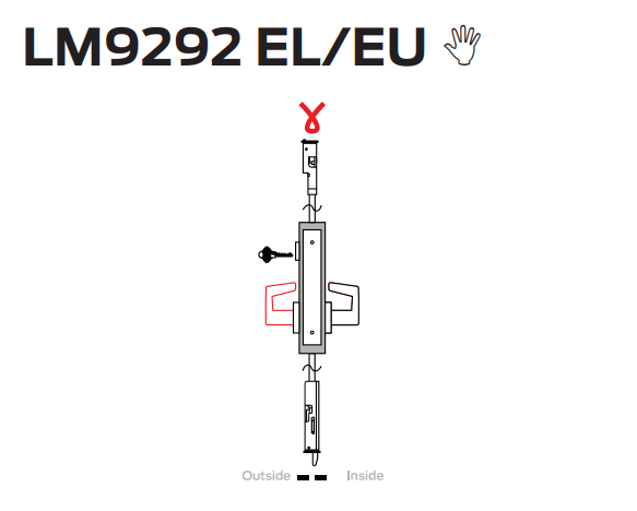 • When power is removed (or power fails): in EL mode either lever will retract latchbolts; in EU mode outside lever is locked