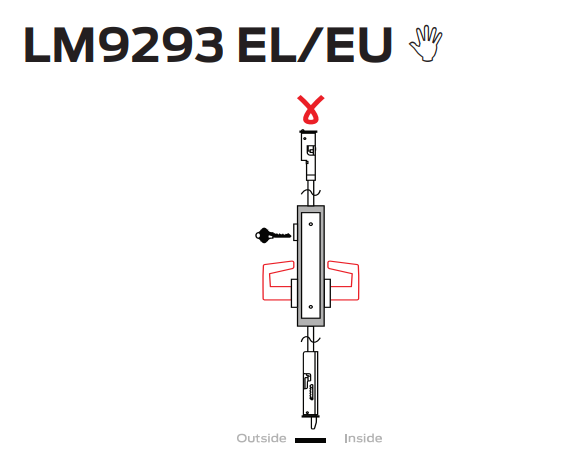 • When power is removed (or power fails): in EL mode either lever will retract latchbolts; in EU mode both levers are locked