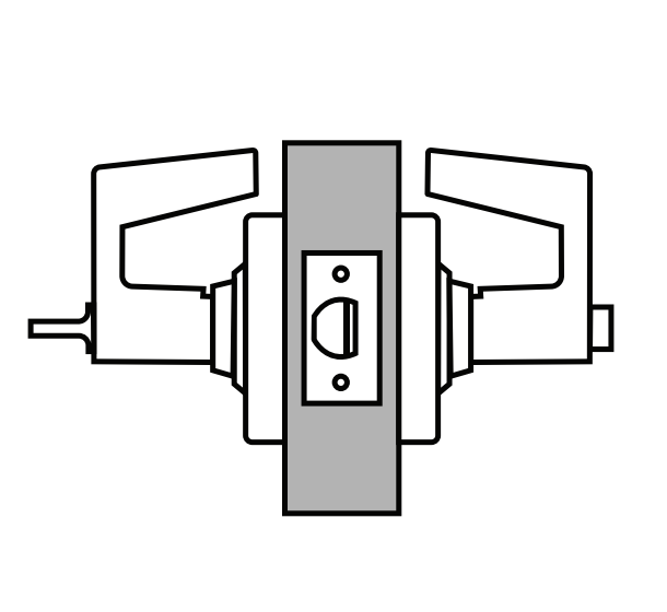 • Rotating inside lever retracts latch and releases button unlocking outside lever; closing door also unlocks preventing lockout